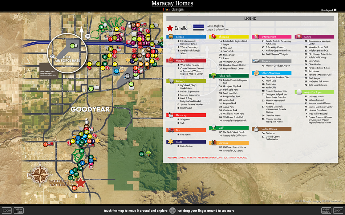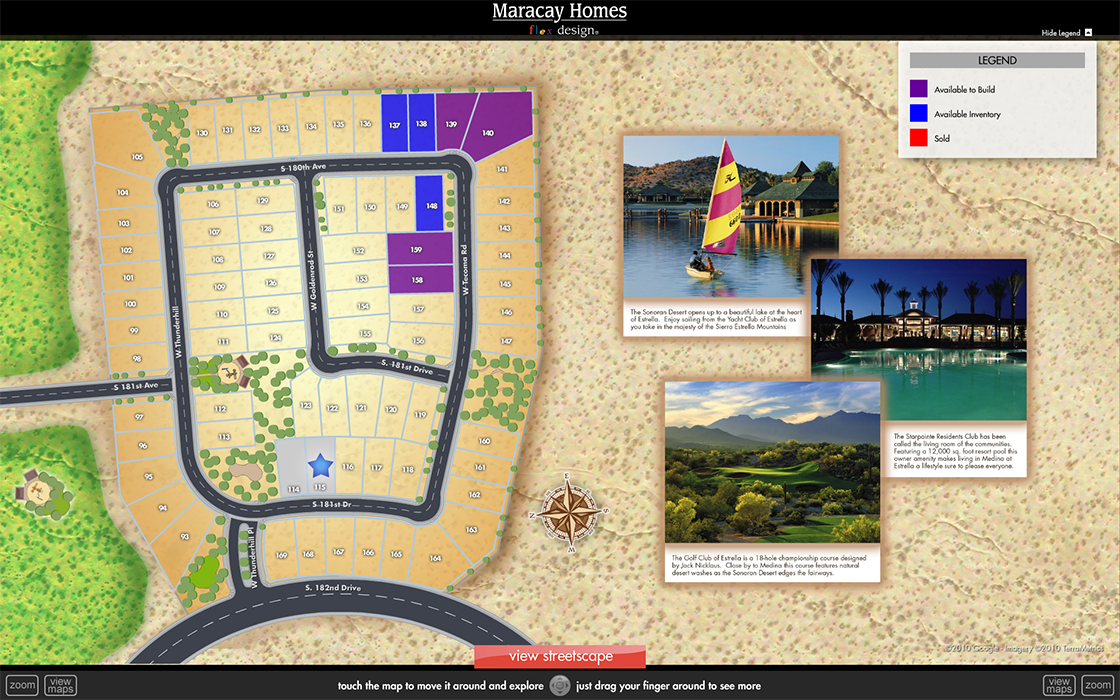 Atomspheric Group, Inc. retained FGD to develop Flash-based interactive touch-screen applications for use in Maracay Homes Sales Galleries. FGD developed applications for multiple developments that enable potential homebuyers to explore community amenities and view lot information. Staff is able to update lot information on-site via a simple admin tool.